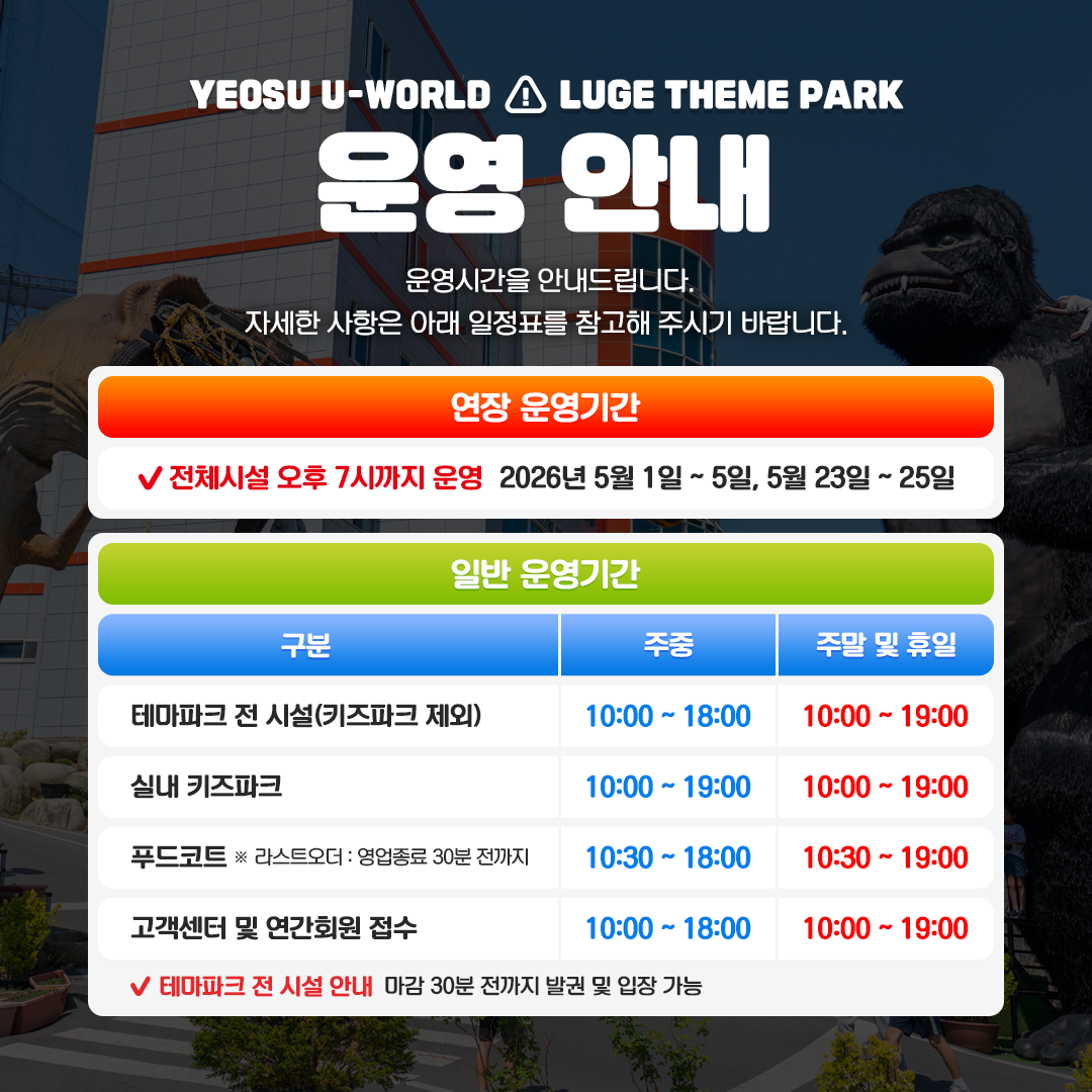 단, 주말 및 공휴일은 티켓 판매가 공지 없이 조기 매진될 수 있음을 알려드립니다.