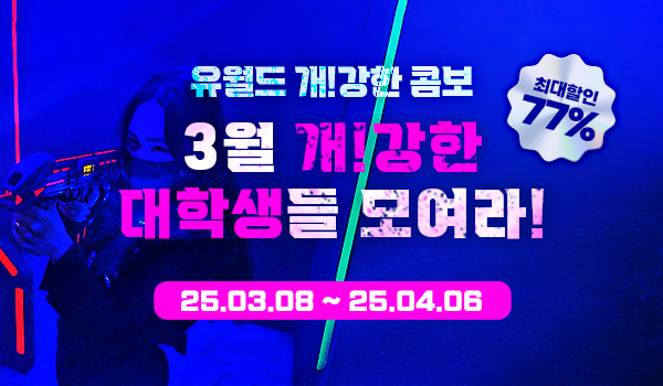 개!강한 대학생들 모여라🌸 봄과 함께 찾아온 개강 소식에유월드에서 개!강한 이벤트를 준비했대! 🐶 유월드 개!강한 콤보루지 2회 + 레이저 아레나 1회 + 놀이공원 3회+ 사격 1회 + […]