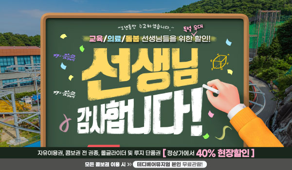 ✨선생님 감사합니다✨교육/의료/돌봄 선생님들을 위한 특별 우대 할인! 💗 혜택✔ 자유이용권, 콤보권 전 권종, 롤글라이더 및 루지 단품권정상가에서 40% 현장할인 (본인 포함 최대 6인까지 혜택 적용!) ✔ […]