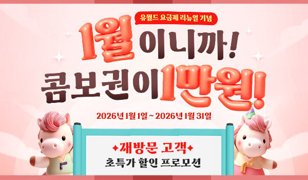 유월드 요금제 리뉴얼 기념재방문 고객 초특가 할인 프로모션 지난 가을·겨울 유월드를 방문해주신 고객님을 위한1월 평일 한정 초특가 혜택! 📅 이벤트 대상2025년 10~12월 유월드 방문 고객이 2026년 […]
