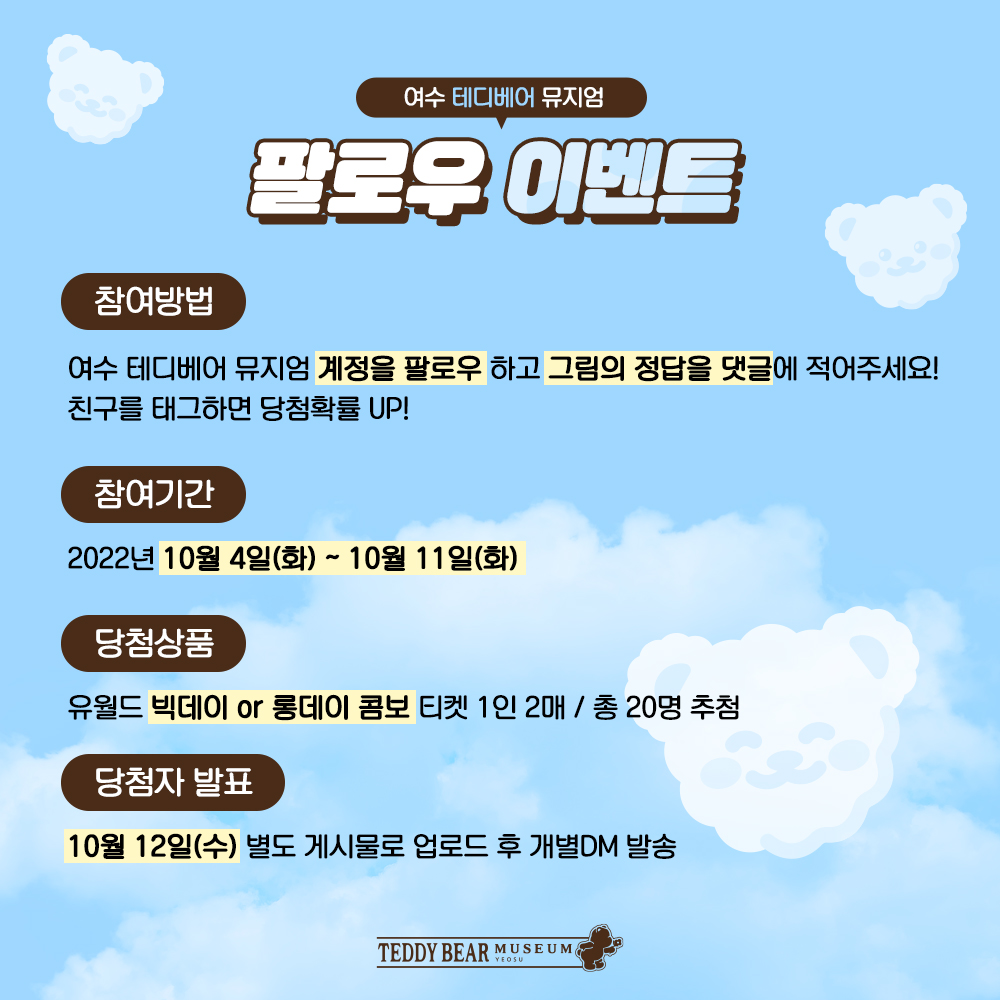 여수 테디베어 뮤지엄🧸 팔로워 이벤트🧡 (마감)