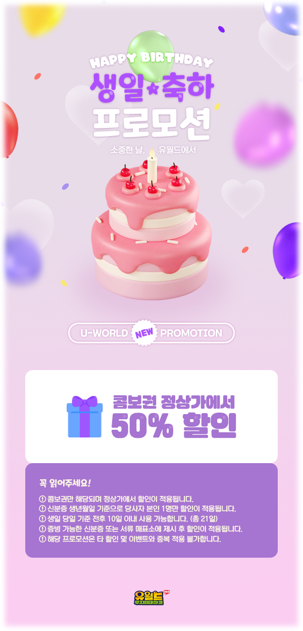 ์ƒ์ผ๋‚  ์œ ์›”๋“œ์™€ ํ•จ๊ป˜ํ•˜๋ฉด ์ฝค๋ณด๊ถŒ 50% ํ• ์ธ!