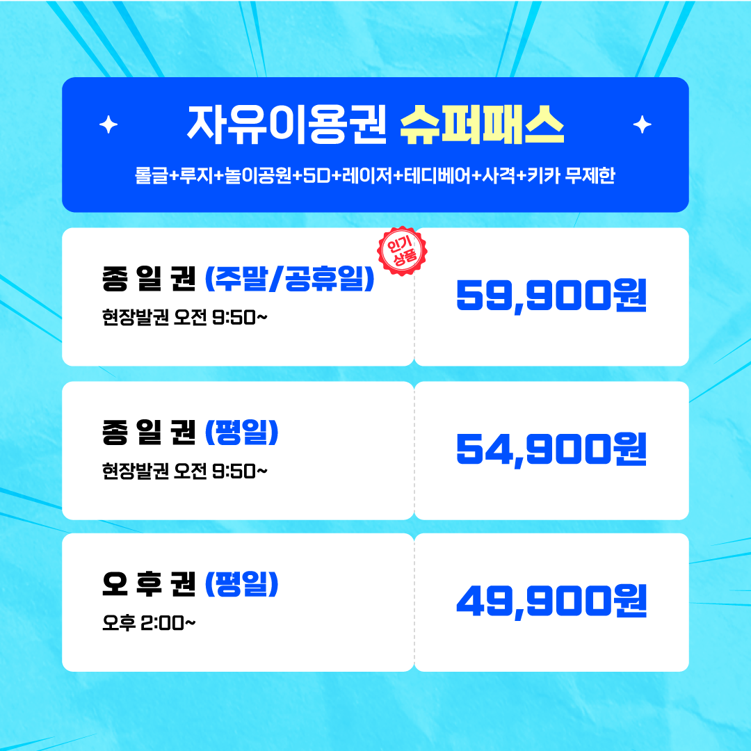 ์ผ๊ถ(์ฃผ๋ง/๊ณตํด์ผ) ์ํผํจ์ค 59,900์ / ๊ณจ๋ํจ์ค 49,900์