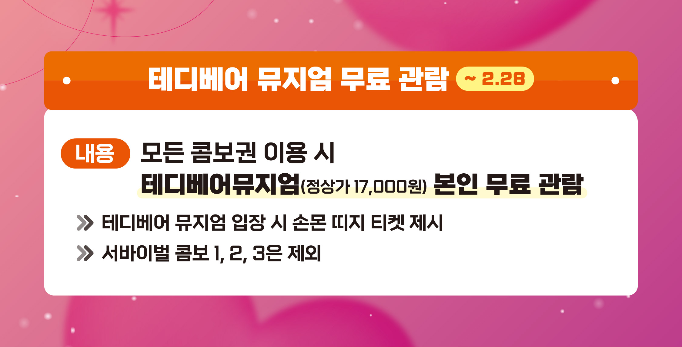 ๋ชจ๋ ์ฝค๋ณด๊ถ ์ด์ฉ ์ํ ๋๋ฒ ์ด๋ฎค์ง์(์ ์๊ฐ 17,000์) ๋ณธ์ธ ๋ฌด๋ฃ ๊ด๋