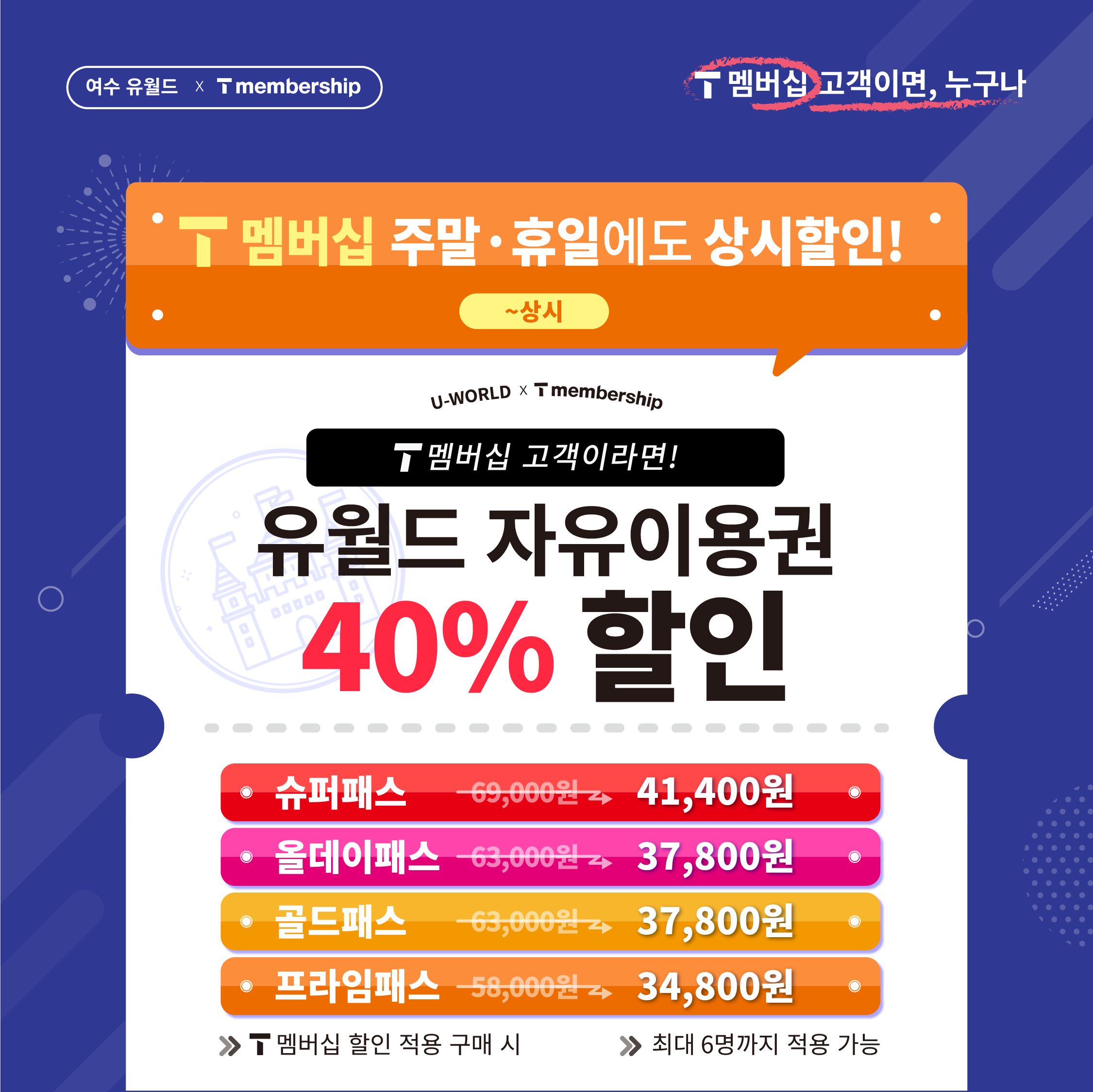 ๐Ÿ’œ ์œ ์›”๋“œ ์ž์œ ์ด์šฉ๊ถŒ 40% ์ƒ์‹œํ• ์ธ ๐Ÿ’œ